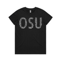 "OSU" Karate WordCloud T-Shirt - Dark Mode Edition (Women's Maple Tee)